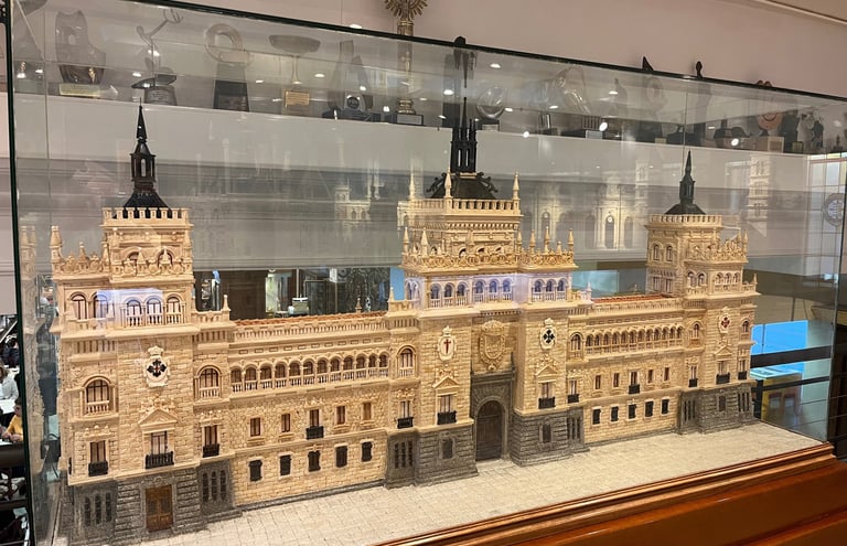 Rodeado por miles de horas de trabajo, convertidas en réplicas perfectas de los monumentos de Valladolid y otras ciudades, converso con Nines, hija del maestro; casi en el mismo lugar en el que se lo ve posando con ropa de faena junto a la reproducción exacta de Santa María de la Antigua —o simplemente «la Antigua», para los vallisoletanos—, e igual de bella. Me lamento por no haber acertado en el tiempo para conocer al maestro. Su expresión en la foto, que decora la portada del librito que recopila sus premios y obras principales, se asemeja a la de un hombre sencillo e inquieto. Me conformo con conocerlo a través de su obra, del sabor de sus dulces y del brillo en los ojos de Nines que, con emoción, me relata su historia a días de dar fin al recorrido de la empresa familiar.