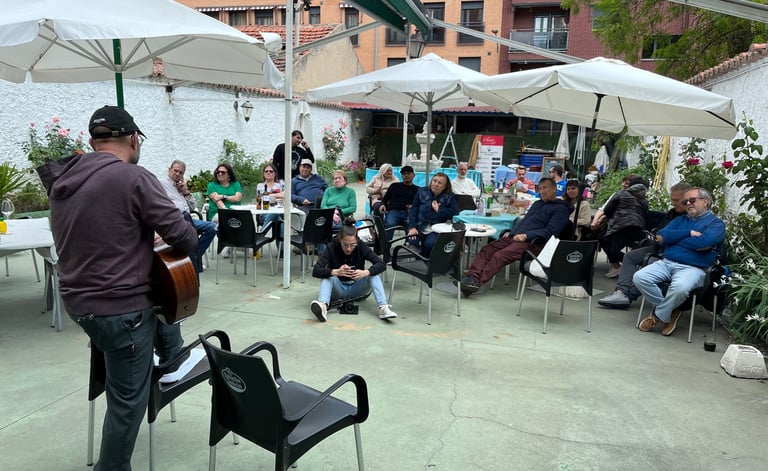 Conversamos de las historias que cada uno trae a cuestas. Historias de nuevas oportunidades y de dificultades, de familias rotas y de familias reencontradas, de estudios y de amores, de fracasos y alegrías, de tristezas y éxitos. Las traemos a rastras desde Santa Fe, Córdoba, Mar del Plata, Mendoza, Bahía Blanca, Misiones, Buenos Aires y otros rincones de la Argentina; y se mezclan, como los ingredientes en la cazuela, con las de los amigos o familiares españoles que nos acompañan. Probablemente cada uno traiga sus preferencias políticas, o ninguna; pero eso no es lo que nos convoca. A nuestras mesas no están invitados Macri, Cristina Fernádez, ni Milei. Tampoco Sánchez, Abascal, Díaz ni Feijóo. Nos convoca un mayo hecho de otra cosa, de identidad construida por sabores criollos, como el locro que acaba de salpicarme la remera, de tardes de lectura que me recuerda la Mafalda estampada en la camiseta de Alejandra, del murmullo de las cataratas que me llega en el acento misionero de Claudia, y de la sabiduría criolla envuelta en música que brota de la guitarra de Wilson, el payador errante, que, como el Pisuerga, también pasa por Valladolid; y que, en este mayo de encuentro, acompaña los mates de la tarde con los versos del gaucho Fierro.